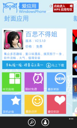 中国産のWindowsPhoneマーケットとでも言いましょうか こういうマーケットは中国産のものがいくつか存在します。 今回試してみたのが爱应用というアプリ 中国語で「应用=応用=アプリケーション」という意味です。 なので訳すと愛アプリケーションになるのか…