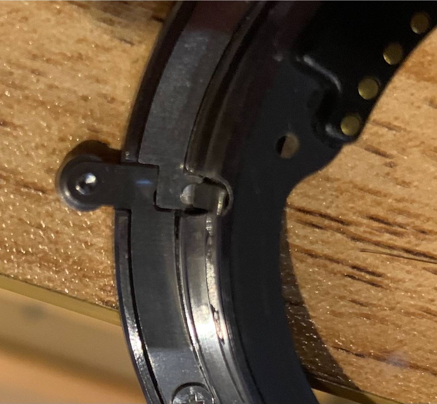 その裏側ですが、金属が重なっているだけで、私はちょっと力入れすぎで曲げてしまいました(なかなか外れなくて力を入れてしまいました。)