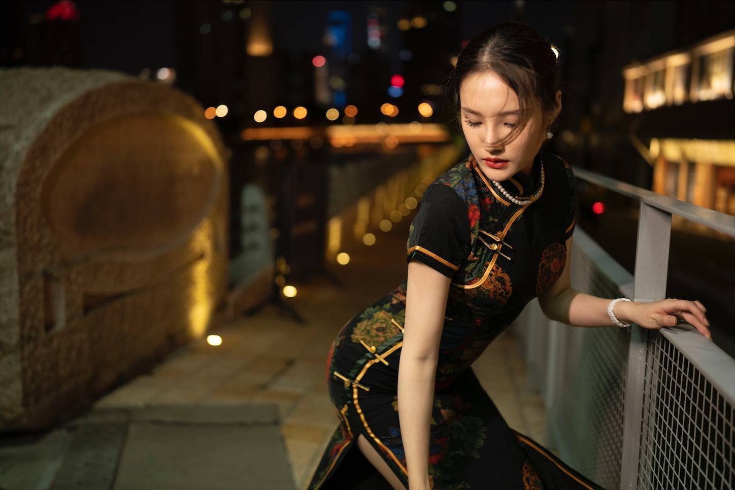 上海蘇州河の鉄橋で夜のチャイナドレスポートレート「上海灘」でした。