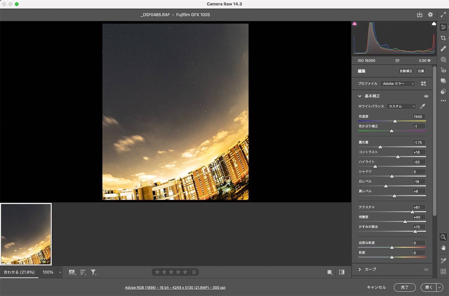 GFX100Sはマニュアルレンズの拡大ピント合わせが難しいというか拡大率が低いので広角になると結構難しいというか、最大に拡大してもよくわからない。。。私の視力の問題もあるのですが、この辺はフジフィルムさんになんとかしてもらいたい。